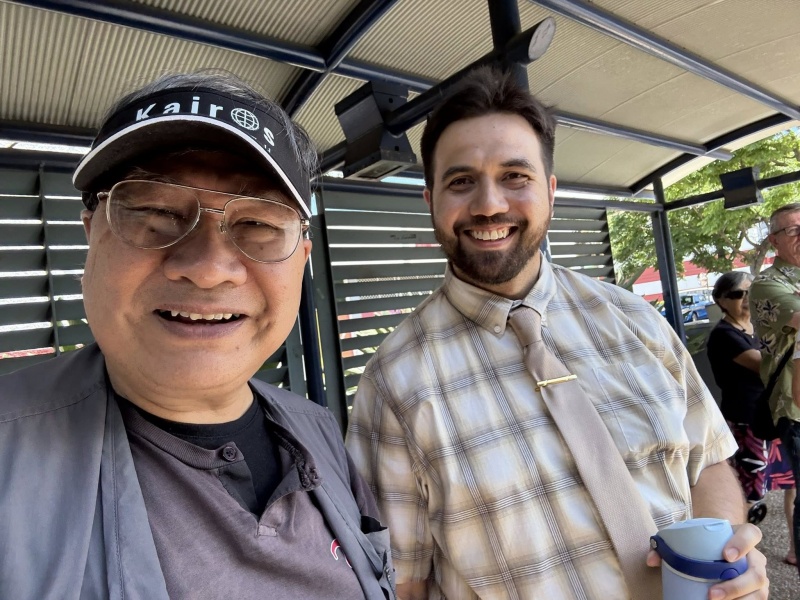 Rejoice to have Johnny coming back from Taiwan to team up with me at Toowong. We were led by the Spirit to connect with the elected persons for a divine conversation chat. In general, the overall result was good with only small ratio of unsuccessful approach. For me I chatted for a longer time with with Catholic Christian from a cross breed family of NZ & PNG. A Lady from Sudan, and a local Aussie man that earned me a selfie with them.