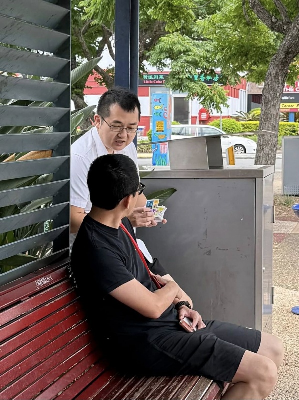 Today it was still Edwin and Hung teaming up to do street outreach at Sunnybank. As usual, Edwin reached great number of people with his quick move to connect with people indiscriminatively. Hung on the other hand tends to hang on for longer chat. Today, Hung was led to connect with Christians who have varying degree of assurance of salvation. Rejections were also part of the fact of life on mission with God. It is more so good training to build steadfast faith and perseverance irrespective of reaction.
