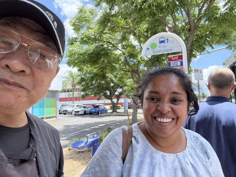 Hurrah! Edwin rejoined me to day at Sunnybank. Together, we reached great number of people. Edwin inclined to make quick chat of the nutshell of the gospel in very rush situation with the quick bus arriving schedule. I had several longer check and gained some selfie picture with those who showed appreciation for the chat and the gospel message. People group we met included , PNG, Filipino, Greek Orthodox, Singapore, Korea, local Aussie, Mainland Chinese etc.
