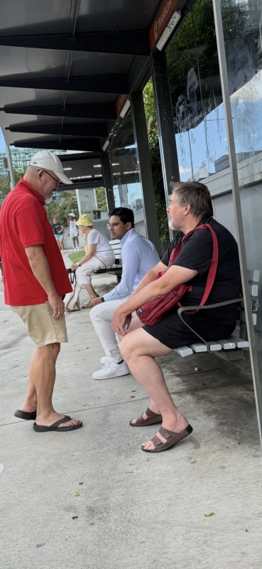Hurrah, for a long time, Johnny , Edwin and Hung teamed up again at Sunnybank. With the quick feet of Edwin, he as well as the team of three had covered almost every one turning up at the Bus Stop. Either we got a chat or a reject in polite or rude way. No one person was omitted for a divine approach.