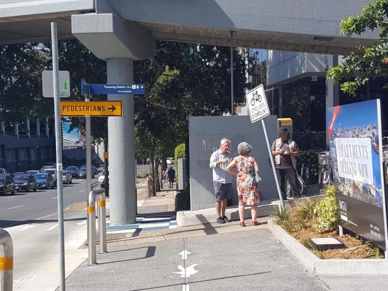 Meets 1:30-3pm every Tuesday afternoon at the Toowong train station on the 2nd floor and splits into two teams, one at the main entrance of Toowong Tower on Sherwood Road, another at the foot of the pedestrian bridge across Benson Street.