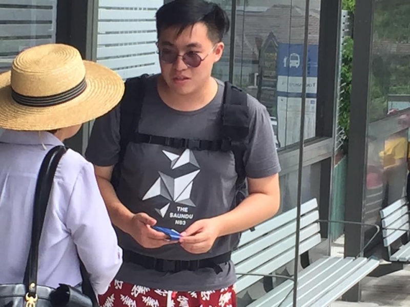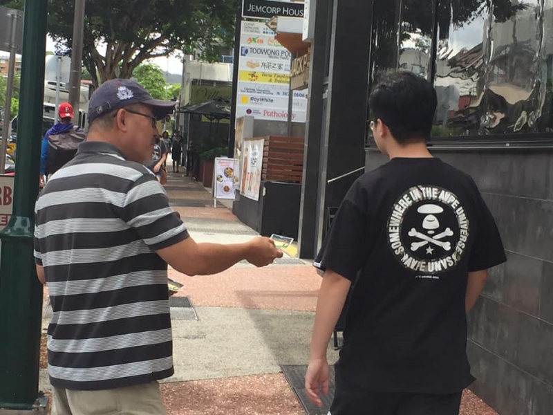 3) After that I walked up to look for Johnny with Kiatecj who felt like switching place across the road back to the Shopping mall side. On the way, I handed a tract to An Aussie skinny lady. She accepted it with reluctance and hurried off to her errands.