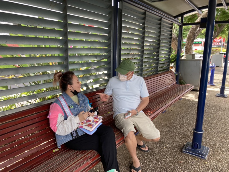 0) I first approached a lady for a short chat before I caught up with Joe. The bus came too quick to get her away.