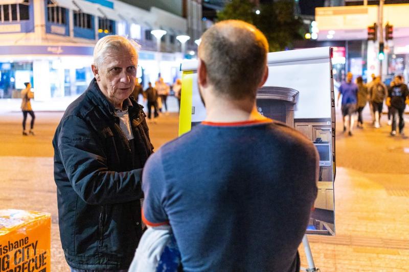 Posted 11 June 2019, 12:11 PM by Matthew Andersen. PermalinkOn Saturday the rain came as the day went on and by the time for outreach came Brisbane had been thoroughly soaked. This meant there were fewer people around than usual. There were also showers coming on by which meant most people were dashing off somewhere between showers, whilst it was dry. So the evening was a little harder going than usual but this didn't stop the conversations. There were still plenty to go around, it was just more work to start them.