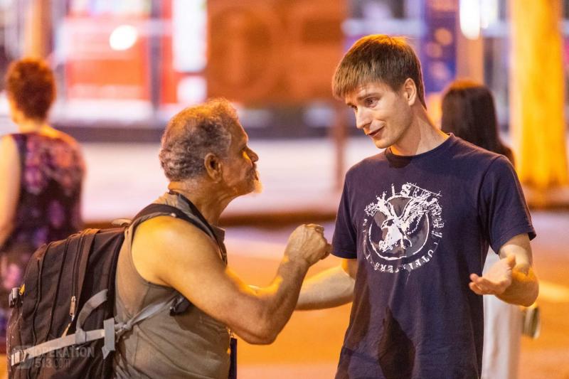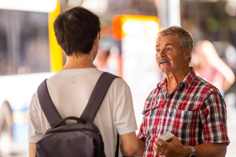 Posted 8 March 2019, 1:30 AM by Matthew Andersen. PermalinkAs the Wednesday outreach began the team were reminded that summer in Australia hasn't quite left yet. Meaning it was a nice and warm day where many people remained in the square to talk and engage. Due to some team members being away on holiday the team started mostly in the shade near the road, where conversations are harder to start as usual, despite many rejections the team were able to get into conversations and and early conversation was had with an older gentleman.