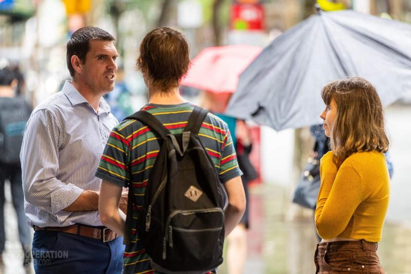 Posted 4 April 2019, 10:16 PM by Matthew Andersen. PermalinkWednesday afternoon in the city came with surprising rain showers that would clear the square in a matter of moments. But this meant that the team could find conversations under cover quite easily. Again there were seven team members out, three of whom came down from their local offices during their lunch breaks because, to quote one of them, "There are things more important than burgers in this world".