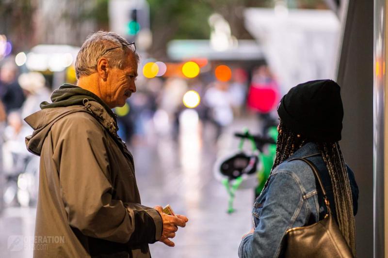 For the first outreach of the year the team headed back into Brisbane city for an afternoon of conversations. It was actually a harder afternoon than usual as many people were still exhausted or hungover from the previous night, rejecting chatting because of their physical state. But after a number of attempts to engage in conversations, Fran was willing to chat.
