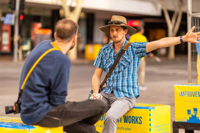 On Wednesday afternoon in Brisbane city, it was a team of four over the course of the afternoon. This was okay though as the showers of rain meant conversations were limited to areas under cover.