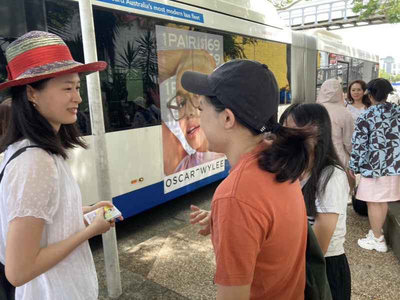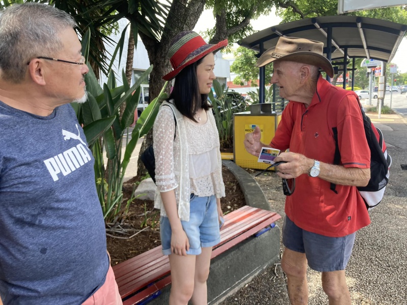 8 ) Next was a UQ student from mainland China, who was a bit too nervous to chat but still took a tract.