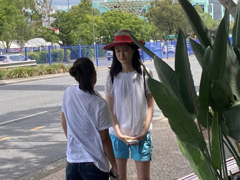 6) Then I was led to approach Melany who is a local Aussie from Cairns but now got to study at the Griffith Gold Coast Campus. I told her every Thursday; I pass by her Uni to Australia Fair for street outreach. Then she told me she is a Chrisitan and answered my first diagnosis question confidently with100% assurance of salvation. But when asking the 2nd question why. She showed a completely wrong understanding of salvation by grace through faith alone. She claimed her assurance is form his compliance to the Bible teaching and service at the church. I cross check if she is of Catholic background and the answer is positive, so no wonder she has such fatally wrong fake assurance. She anyway thanked and appreciated for our friendly conversation and took a selfie with me wearing a big asserting smile ,