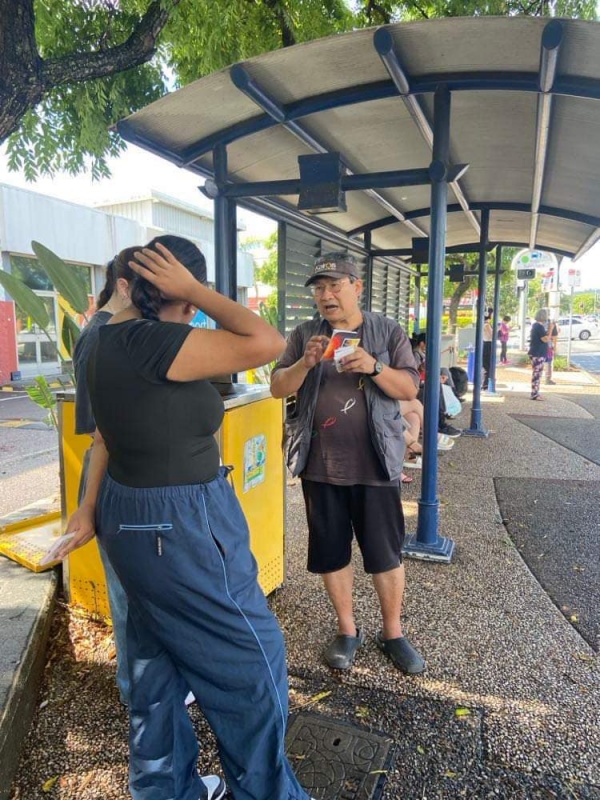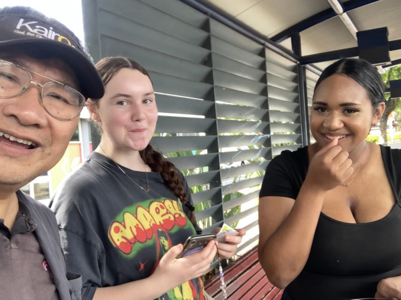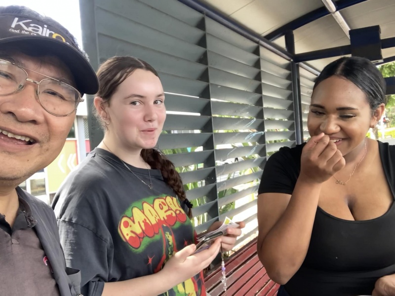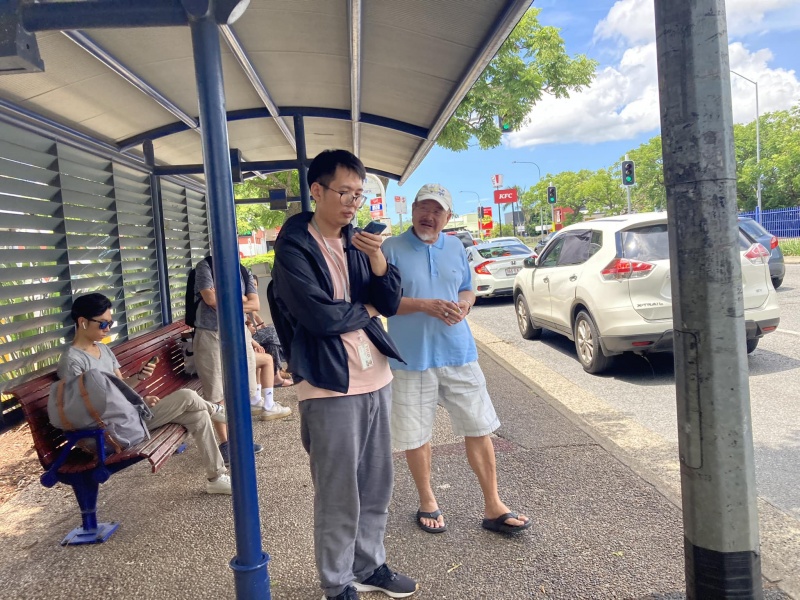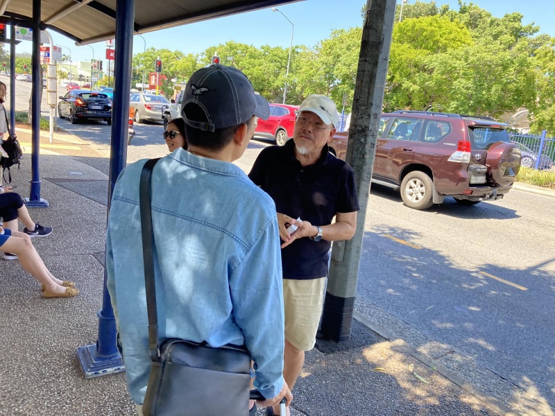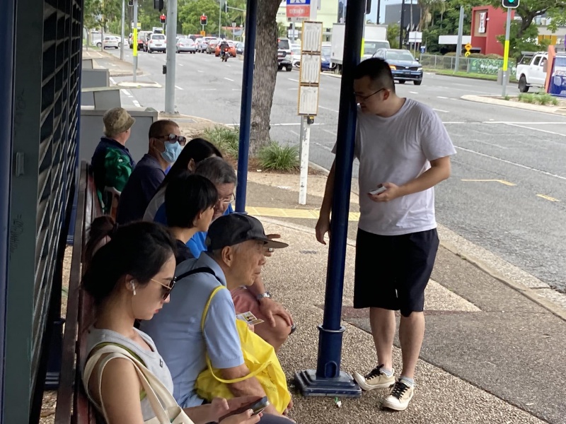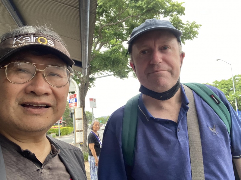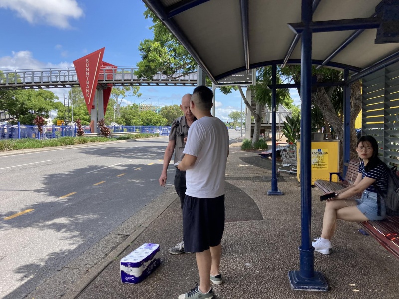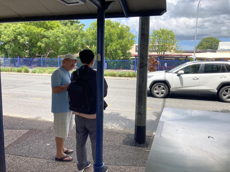 Praised and thank God moving Edwin Qin Hao to join ne today at Sunnybank when Johnny is away back to Taiwan for a month. It is always good to serve the Lord as a team. Thew physical condition (weather) today was excellent, sunny but not hot or wet but the Spiritual atmosphere was low. This was in total contrast with yesterday where the Physical weather condition was bad but God's glory was over the mission field at the bus stop that, almost every single one appeared open and receptive to the Gospel proven by many willing selfie photos with me. Today, it was a different picture with a higher-than-average reject rate and some conversations also linger not long enough for full gospel message sharing. Despite of the not so favourable environment, Both Edwin and Hung still had many divine appointments made with particular persons for a longer and fruit bearing conversation.