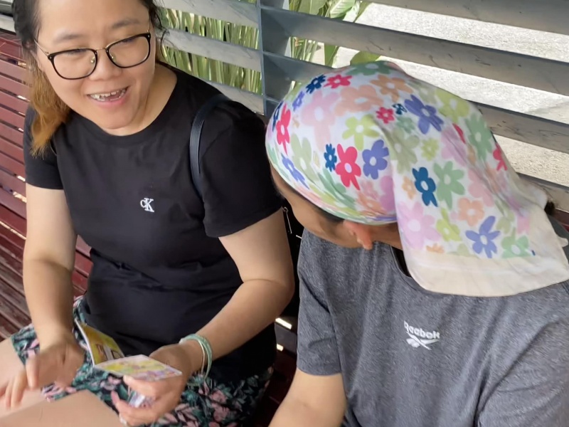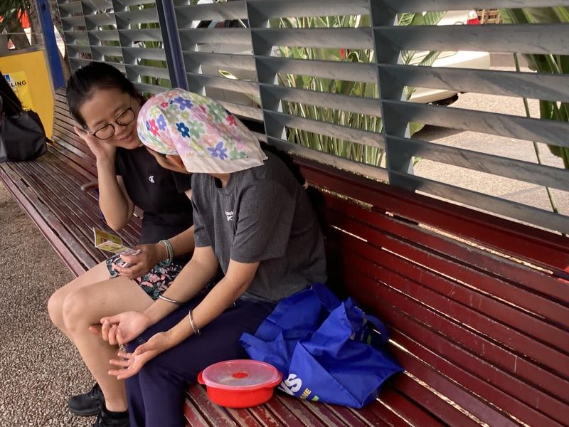 1) I was attracted to approach a Mum and daughter combination of senior age from Guangzhou as I overheard them speaking in Cantonese but they were very sceptical to double check who I am. Eventually, they still took a tract to read when their bus came.