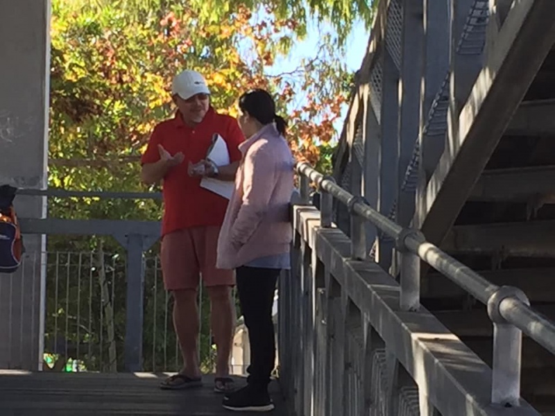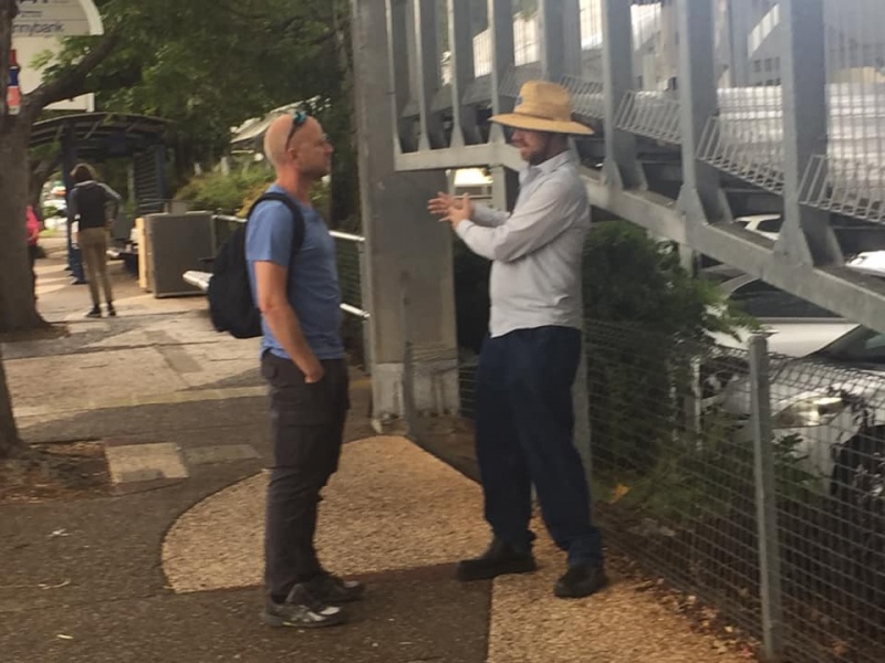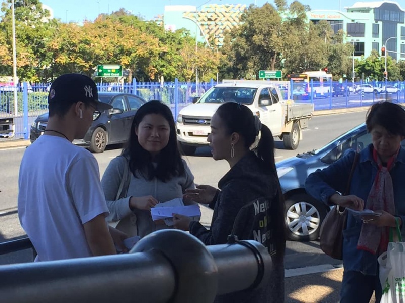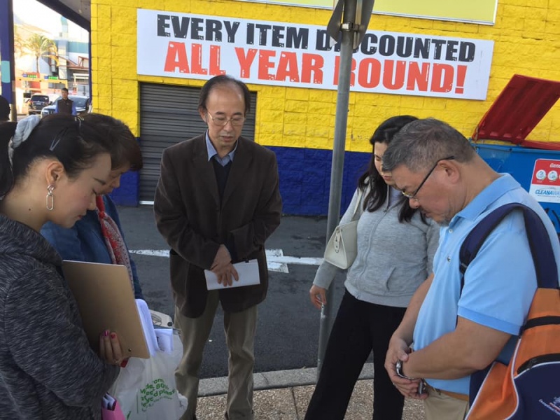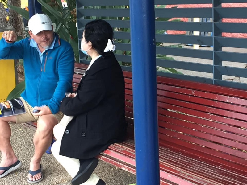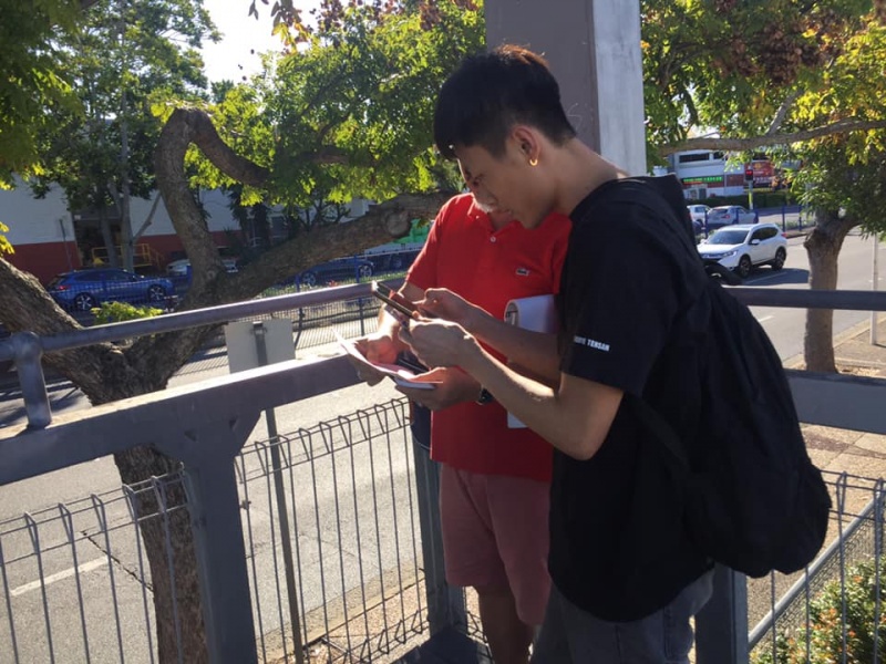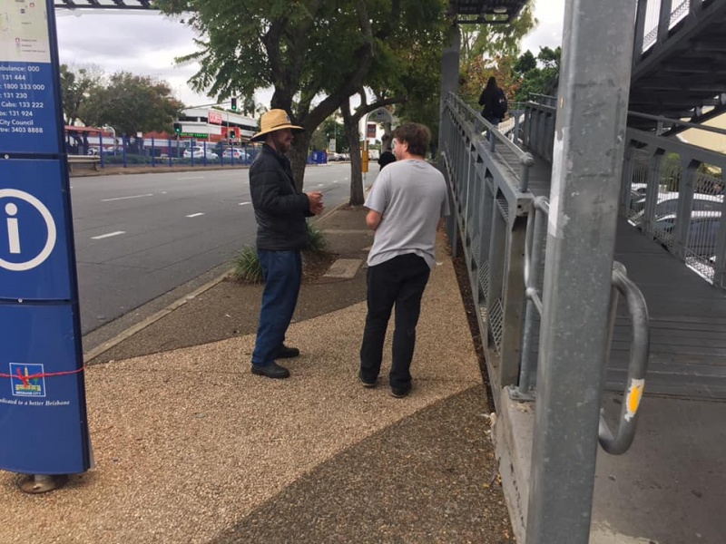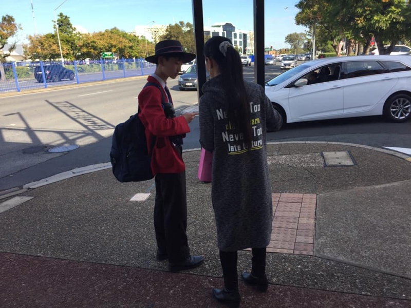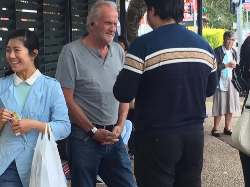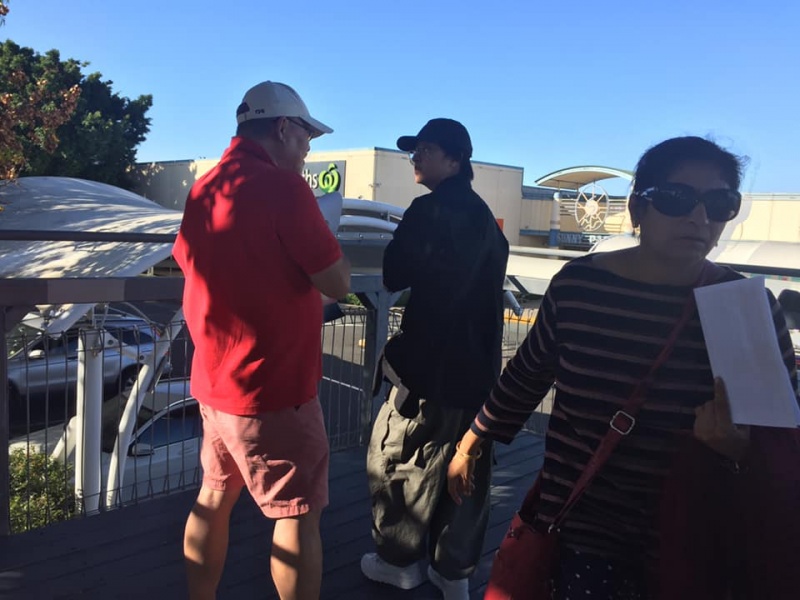 What a glorious day of Street Evangelism augmented by God. Our prayer for more gospel warriors has been answered so prominently today that a team of three from the Rock Church nearby i.e. Pastor Shu He David Zhang, wife Zhen Zhen, and member Linda turned up to day. Meantime, Hai Yue the graduate of the 6th Online Kairos also came for the 2nd time on her rest day of the busy rooster duty schedule of an Intern Doctor of the Royal Brisbane Hospital. So together with Gary, Johnny and Hung, God has raised up a big team of 7 persons to serve and partner with God. We spread out to two spots, one being the foot of the pedestrian bridge outside the Pharmacy Warehouse and the other at the bus stop. Actually, Haiyue who arrived a bit late served without boundary but all over the place as God led her to get hold of people between the aforementioned two spots.