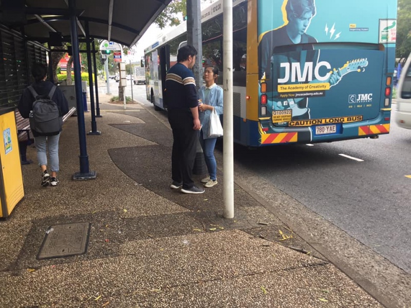 1) Katherine is a Vietnamese born here. Initially she gave outright rejection to chat or accepting tract. But when I found out she is an UQ student , so the Spirit prompted me to identify with her as the Alumni then started sharing what subject I did and why leading to a personal testimony how God moved me to do this Master degree study for gaining an identity to join the 2008 Sichuan earth quake disaster relief team partnering the HKG Counselling professional to provide post traumatic counselling. From this profession healing I led her to see that our life is all full of hurt and ruin by bad relationship twisting the normal function of emotion affecting our character growing up as an adult. It allowed me to introduce the issue of sin we all are suffering hurting each other and without peace and sense of security. So the Spirit guided me to actually share the full gospel to her with time just right before her bus arrived. I was graceful for the Wisdom from the Holy Spirit to turn around most of the initial rejection lately back into an in-depth heart sharing opportunity ending with the preaching of Gospel with better life inspiring effect. Pray that the Spirit will do follow up work on the life of Katherine.