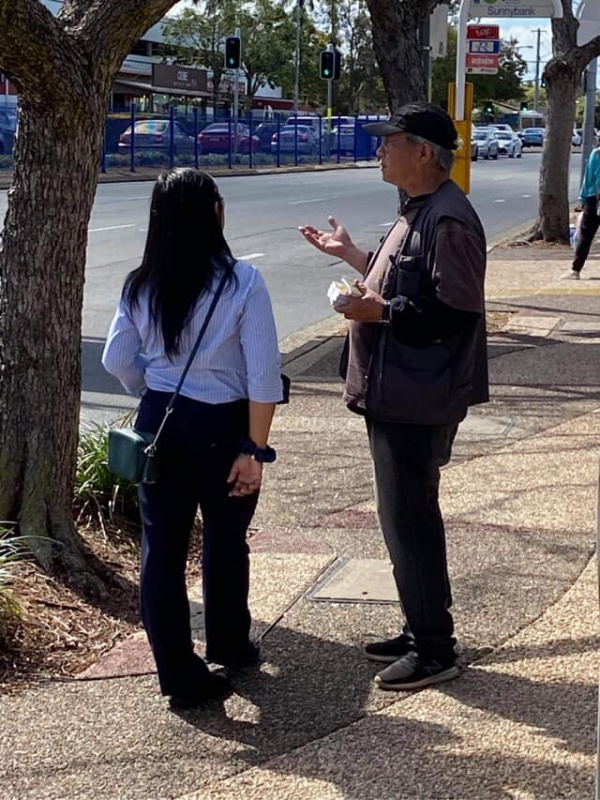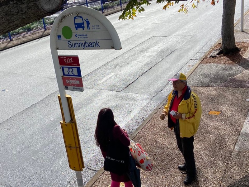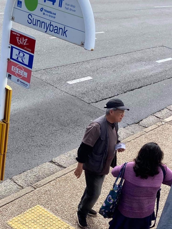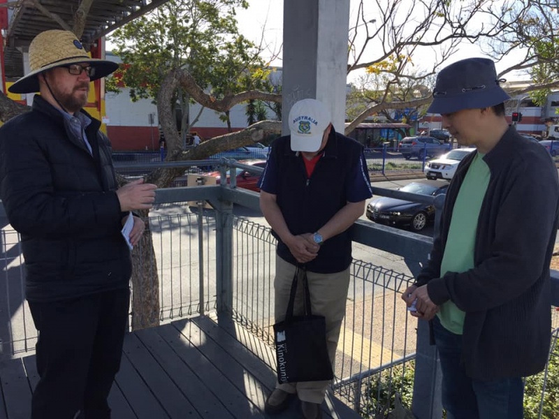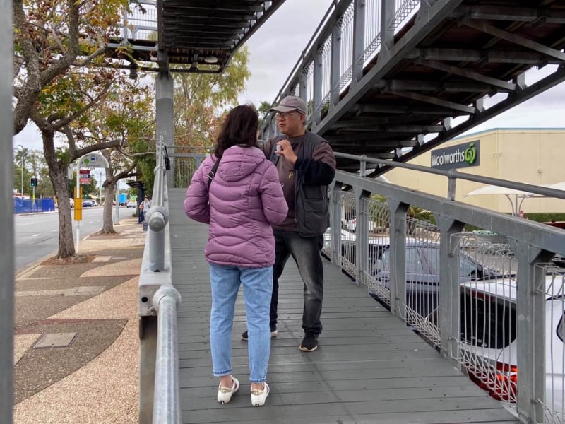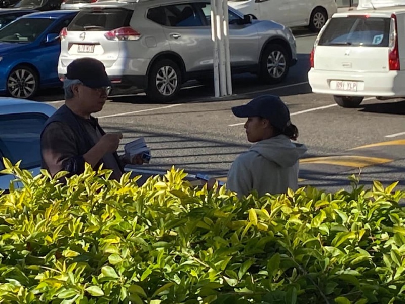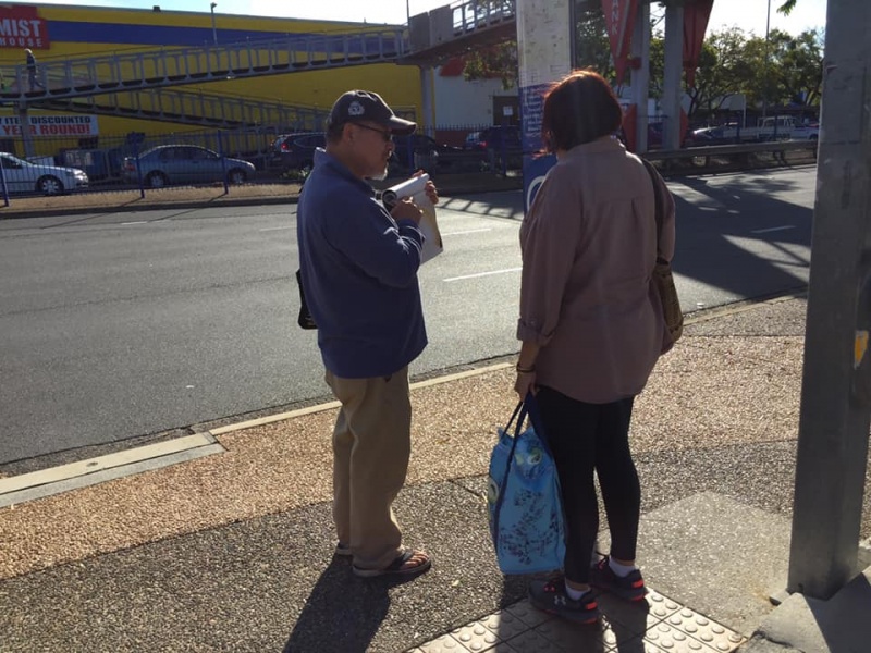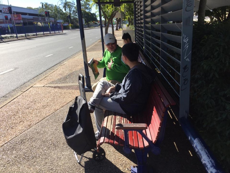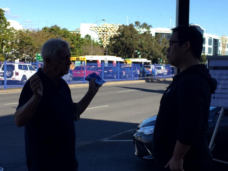 感謝天父上帝的帶領和祝福, 關牧師和我再一次開始南區Sunnybank 街頭福音事工,今午有兩位簡、魏Working Holiday 的台灣同胞,嚴姓大學生,還有Tammy Lee, 他們都停下了腳步,聽到了福音, 祈求上帝保守賜福,拯救那願意為罪悔改並相信耶穌基督的人。