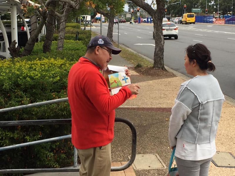 After one month of rest, we have resumed serving on the street here at Sunnybank. Even though the Covic-19 community outbreak has not yet been completely over, general reaction of people is still quite receptive as such there were many divine appointments arranged by God for us to share the Gospel.