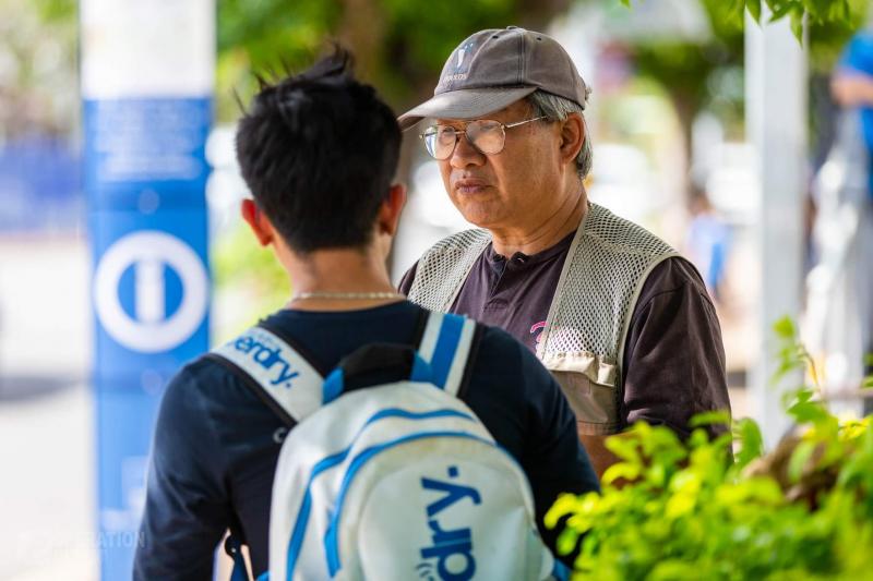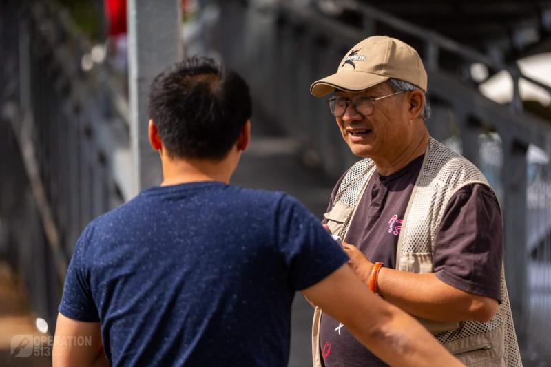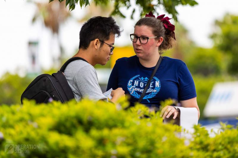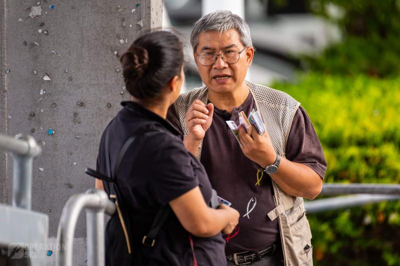 An exciting conversation early in the afternoon was with Coulson an Asian man. He at first declared that it was his goodness that would get him into Heaven. Through the mirror of the law he saw that he was guilty and did not possess the righteousness to get to Heaven. Then he was asked, "How can you be forgiven, so that God may let you in?" and he didn't know. The Gospel was explained using a few analogies and then the checking question was asked, "What must you do to get right with God?" and he said, "Trust in Jesus".