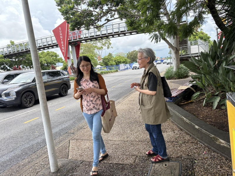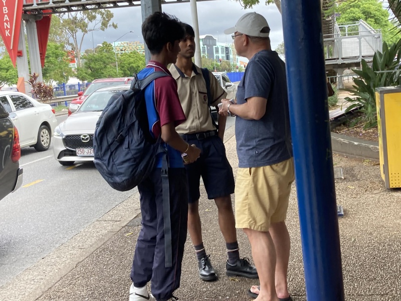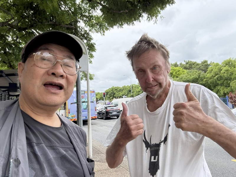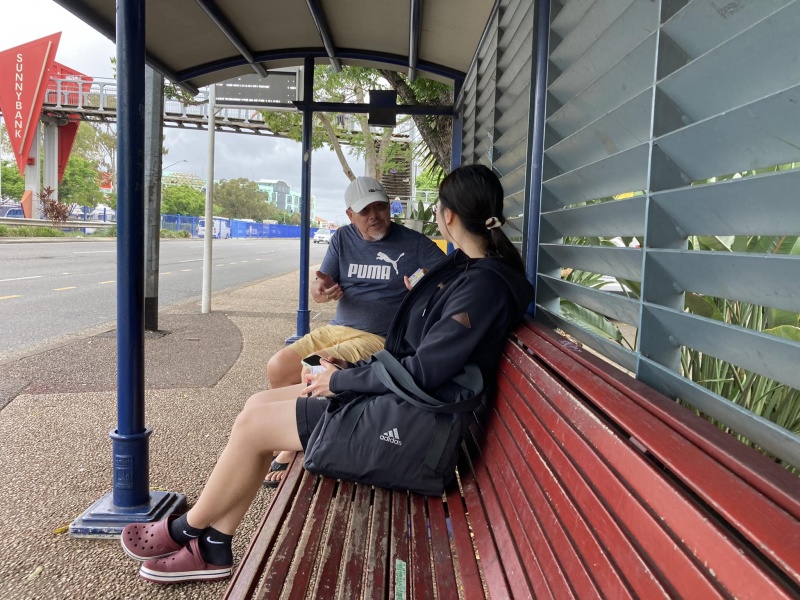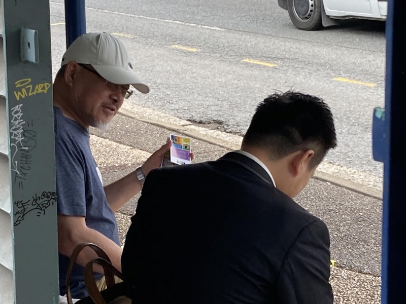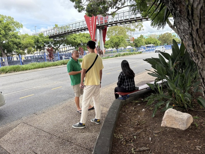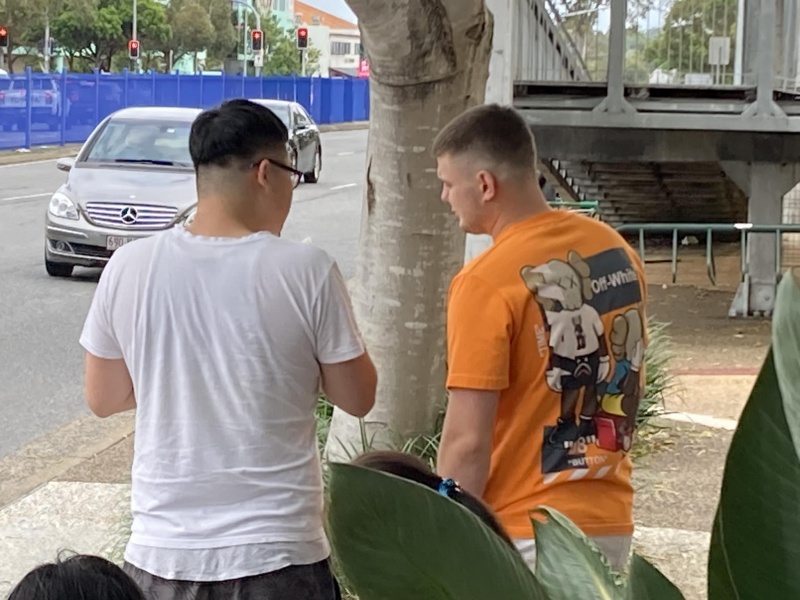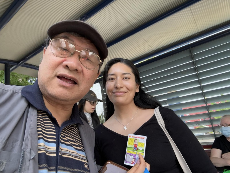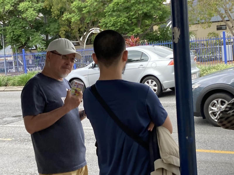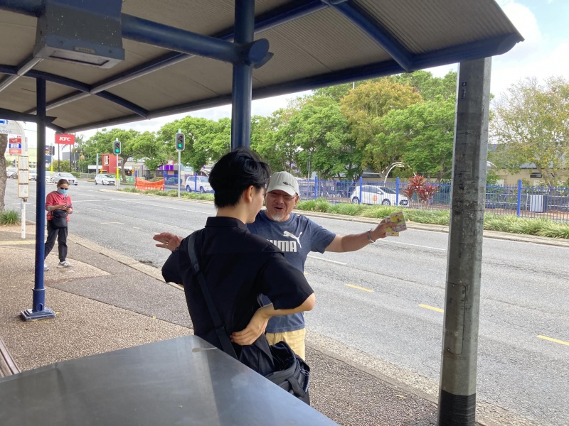 Johnny could not come to day but God reinforced the Street outreach squad. first with Edwin who is generally free now after the Bible college academic year is over, then join by Ann, who could come normally after the zoom prayer meeting is shifted to 3pm. Finally, Sunny Deng and her husband Ben visiting Brisbane for the first time joined us towards the end and concluding our ministry in prayer for each others. As usual, Edwin is a quick action person, getting connected with almost every one gathering at or near the bus stop without fail. In contrast, Ann sticked to have a long conversation with a Chinese lady possibly on many deep topic about faith. I had many contact to day though most are scattered and short one with three stand out divine encounter as recap below.
