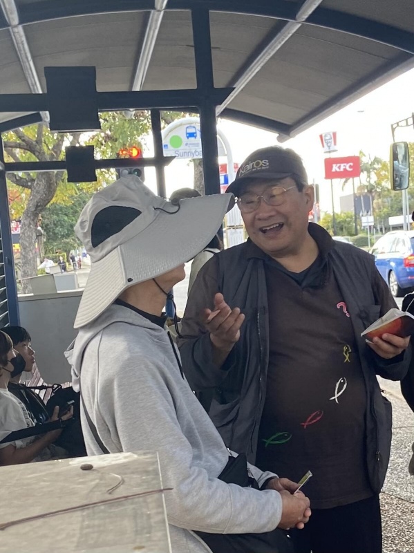 Today was a doom and overcast day but a brilliant time for Street outreach at Sunny bank. With the youngsters Edwin Qin and Shu Ei joining Johnny and Hung as a team, we almost covered any person coming forward to that North Bound Bus Stop outside the Sunnybank Plaza. The overall result was very good, apart from a few rejections, majority conversations led to fruit bearing results with the clear evidence of the work of the Holy Spirit in and amongst us. Recap below is the Battle Log of Hung: -