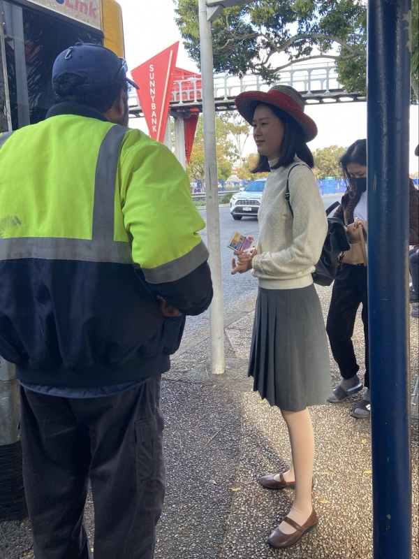 1) I was led to approach first a lady from Shanghai who studies at QUT. She appeared a bit sceptical about gospel, but still politely listen to the sharing of the full gospel before her bus came.