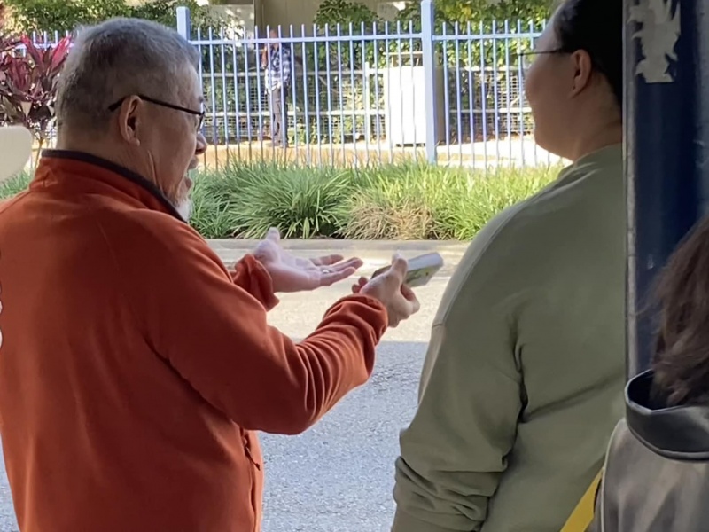 2) Next, I approached a Mainlander for a brief chat and handling him the tract when the bus quickly arrived