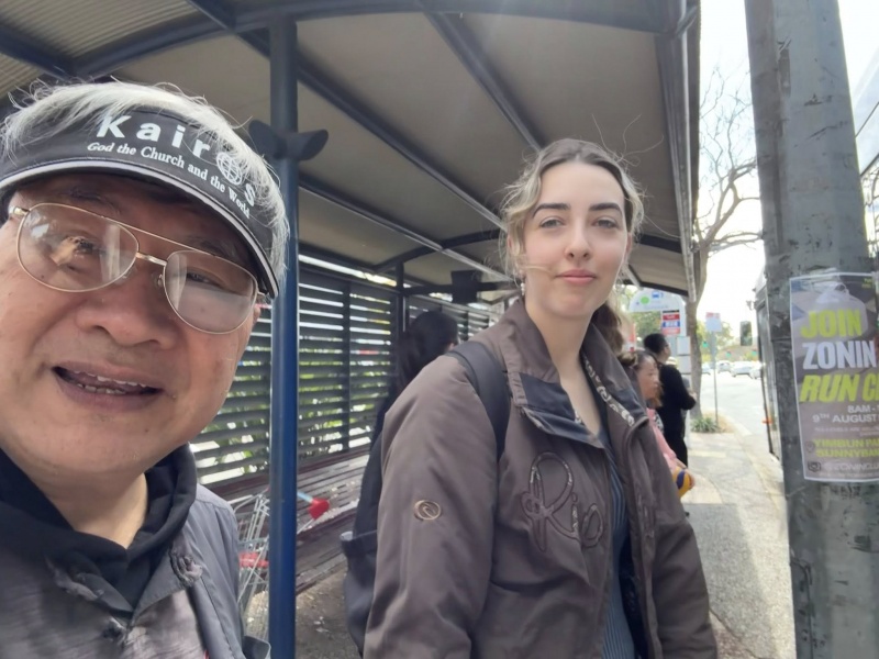 Therefore, I was moved to keep inviting people to have a look of the crash mark of the bus left on the lamp post. It includes a couple migrated from Jiangsu Nanjing, a Senior elderly from Hong Kong, Parminder an Indian guy I caught up last week, and finally a UQ electrical Engineer Year 2 lady who is a local Aussie. God let me have long enough time to chat and share the full gospel message that seemingly have touched her heart like Matthew last week. She even missed her bus by taking time to have a selfie with me. So at the end, I was moved to accompany her till her next bus came and shared a lot more and deeper about the three folds deliverance and encouraged her to really consider seriously to make her timely decision to accept Jesus as Savior.