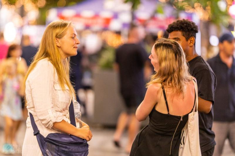 On Friday evening in Surfers Paradise it was very busy! Due to the holidays and the warm temperatures there were many families out! A lot of tourists were around and as a result it was a much harder time than usual to try and get into conversations. Usually when it is quieter there are just singles or couples walking around and are more willing to stop and chat but bigger groups are hesitant to stop, especially in fast moving foot traffic. With a team of 13 out there was also a bit of competition for space but overall it turned out to be a good night!