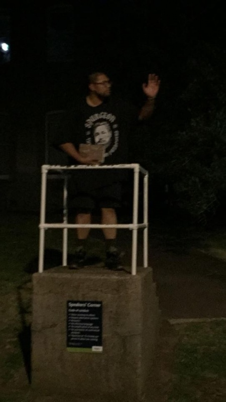On the way home Stewart and I thought we should stop at Speakers Corner as it was on the way. I had never preached there in the night, I remember vividly that the last time I was in Albert Park in the late evening I was unconverted & getting drunk with some friends. Praise God for his work of grace in my heart.