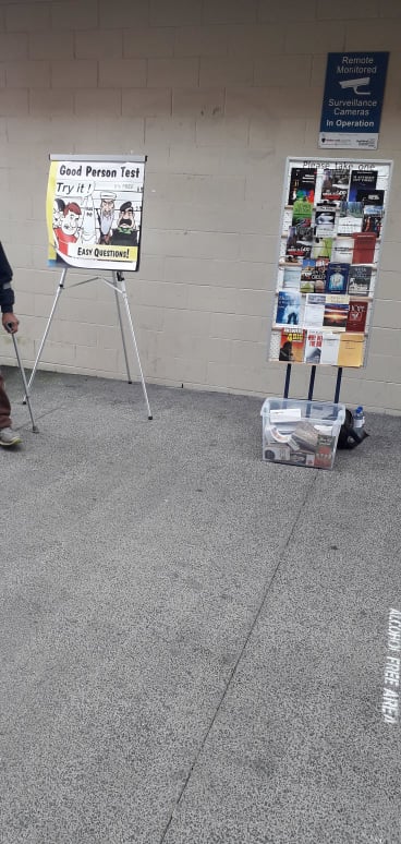 I was teamed up with Pastor Alfie an our brother Stewart, we split up and stood on opposite sides of our usual fishing spot at the walkway, with myself I had many conversations, many of our Op513 tracts were handed out, as soon as I had set up the flip chart I got to go through it almost immediately with a couple of men who stopped and were interested, there were a few others who stopped by to talk to me about spiritual things also with another Christian brother who stopped to encourage me, his name was Will. Two conversations stood out to me today, the first one was with Terry, now Terry I had spoken with twice before, both times we had lengthy conversations about the gospel ending with me pleading with him to repent & trust in Jesus.