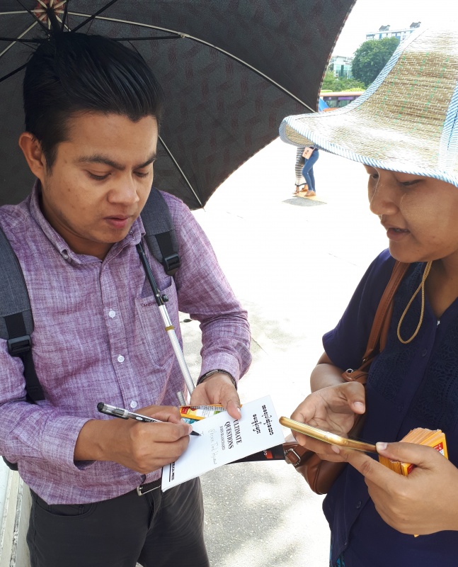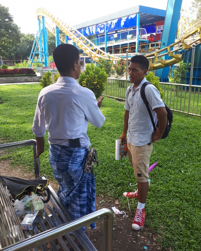 Posted 18 September 2019, 12:00 AM by Glen Richards. PermalinkSaturday saw my team at Sule park again. I found a spot with busy foot traffic and started to distribute tracts with the intention of starting as many Gospel conversations as I could with English speakers, as I didn’t have a translator. My technique worked a treat, and I was quickly in a conversation with a Muslim girl who was on her way to watch a movie and so had the time to talk. I then had a conversation with another Muslim - this time a man from Egypt.
