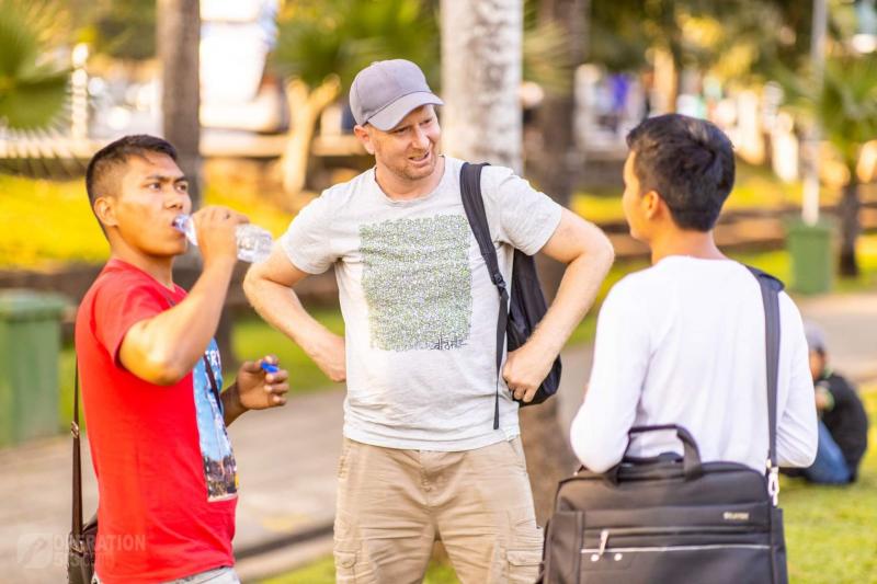 On Tuesday the team split into smaller teams and spread out across Yangon to share the gospel, in conjunction with our local Christian translators. My team was at Sule Park. Unfortunately the park was closed as preparations were occurring for an event the following day. This didn’t hinder us, as there were many people on the streets for us to talk with.