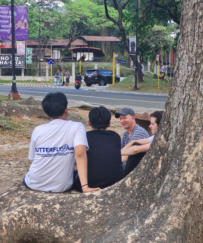 As I reflect, some of the memories are coming back. I’ll highlight one. Edson from the USA was a big encouragement to me. There was a big group of students down in the ‘sunken garden’ and he challenged me to approach them. He said he would take one side, if I do the other. Big groups can be very tiring, and I was tired! But since he was keen, I swallowed my fear and just ‘did it’. Normally with big groups you get people in different places, and 1 person will kill the dynamic so the rest don’t get to hear the gospel. But that didn’t happen this time. Instead, the whole group engaged. Glory to God, it was like a Holy Spirit moment, where I had all their attention for about 10 minutes as I was able to minister the law and the gospel and then work through all the checks to make sure they were really understanding. Thanks Edson for your boldness that enabled God to minister in that moment! Glory to God alone.