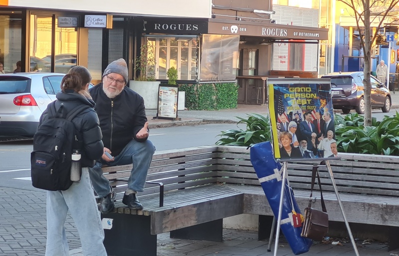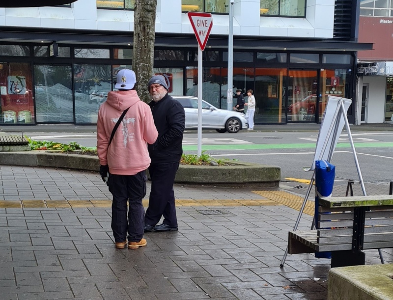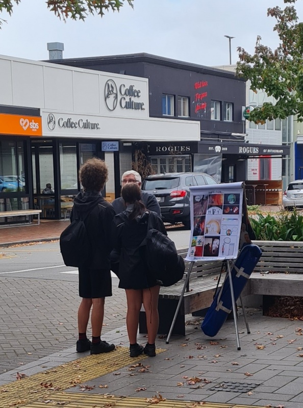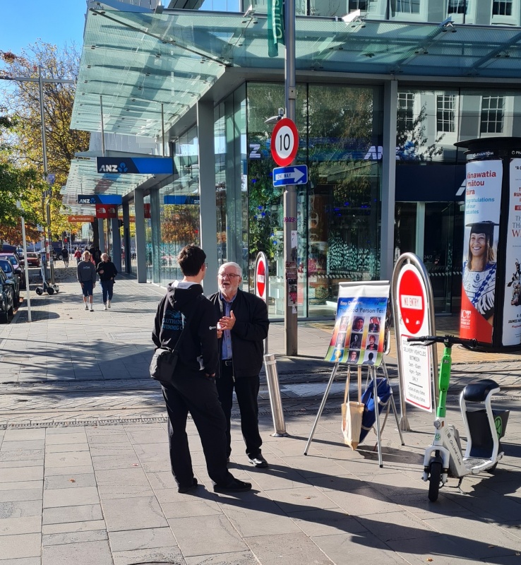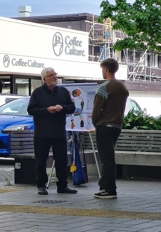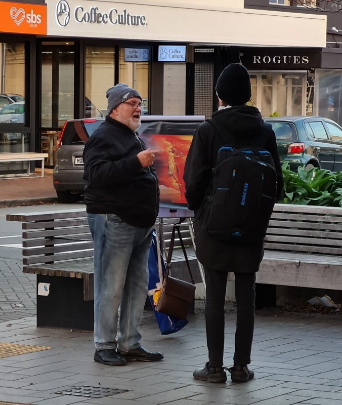 I enjoyed going through the photos for this month's report. There weren't as many as I haven’t been on the streets as much as usual, and all the photos I had were from the Riccarton outreach. All 4 photos (that I’ve included) were taken on the same spot. Roger, with his flip chart. What I like about it is that, as you flick through the photos, it makes you realise how many people you can reach just by going to the same spot for a couple of hours each week. Sure, 1 week might be a bit slower than the next week, but, if you are diligent, then over time you can reach a lot of people.