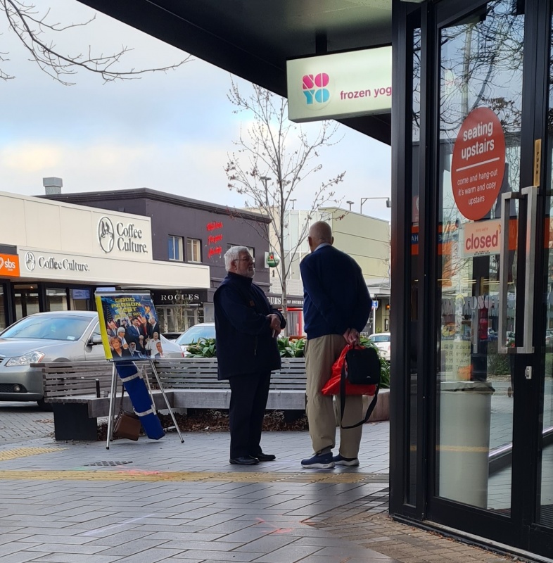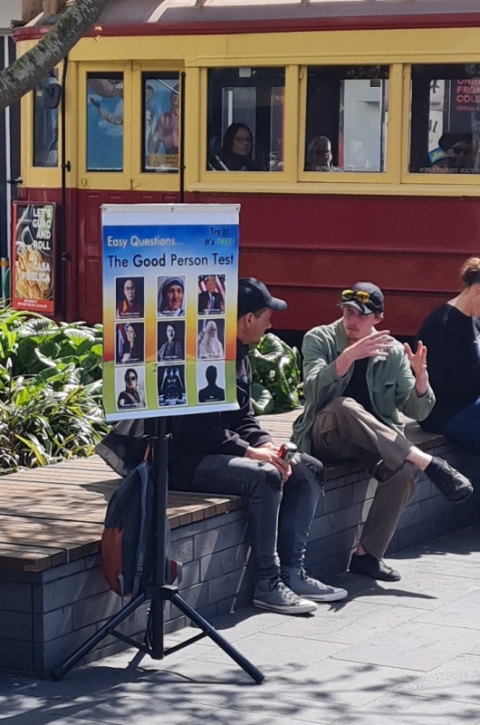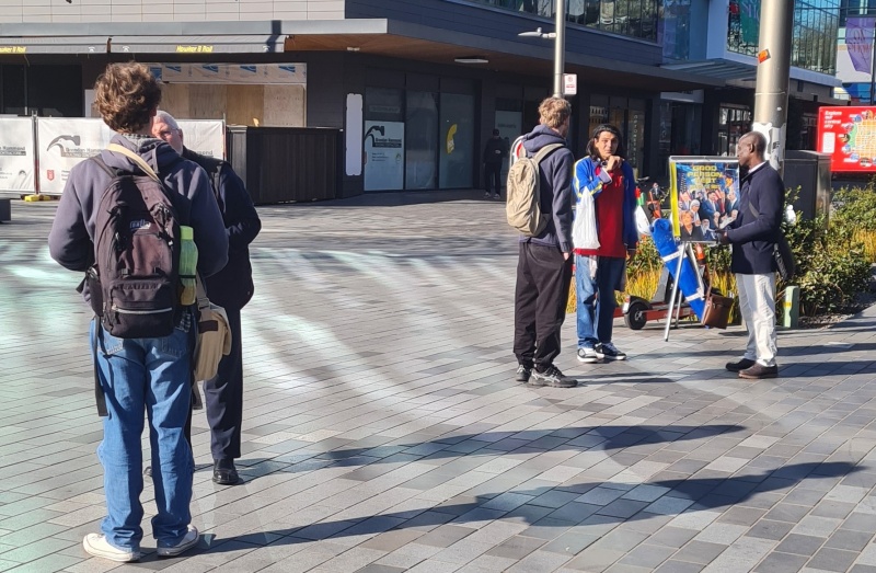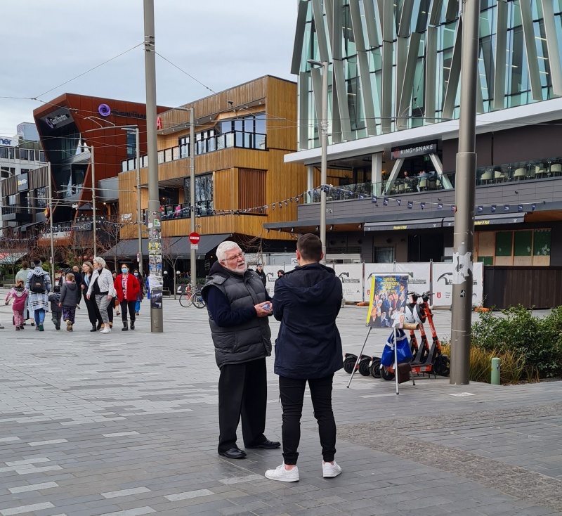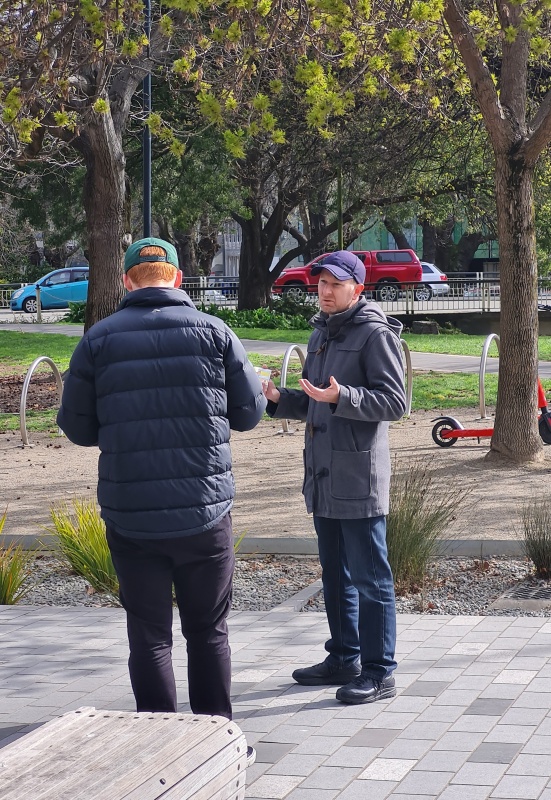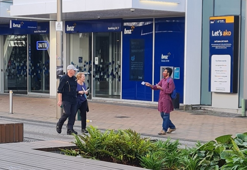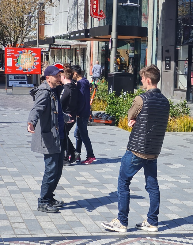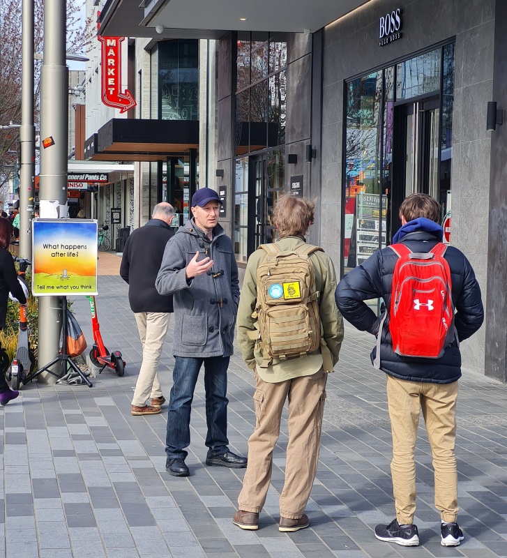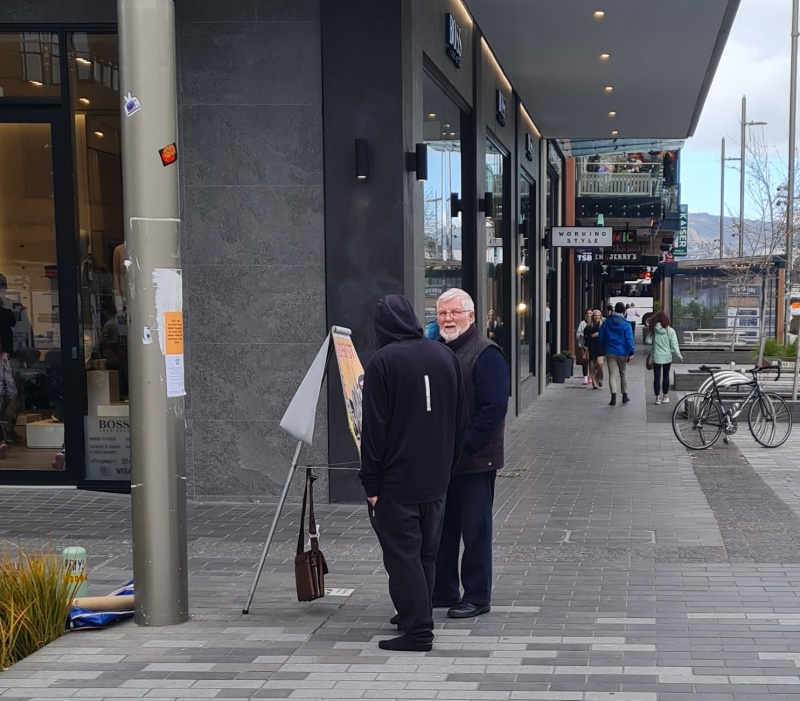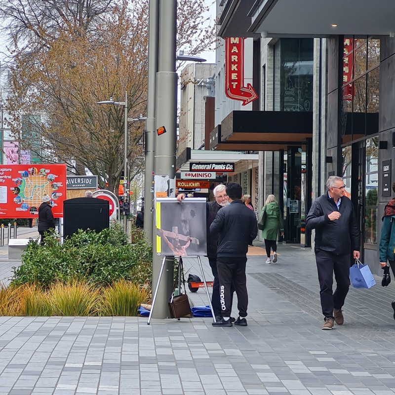 I approached 3 girls who were discussing one of our tracts, one of the girls in particular didn’t want to have another chat about it!  But they did accept a different kind of tract from me.  I turned and immediately 4 guys were walking past, and I got straight into a conversation with them.  It was a difficult chat, because they were in different places and it was hard to get a flow going with all of them at the same time, they all kept interjecting different questions (good ones), I did my best to answer the questions without getting distracted from my goal of sharing the gospel, when I feel like I made a mistake (or did I?)  The MP for central Christchurch, Duncan Webb went past, I’ve talked to him a couple of times before (briefly, he won’t stay to engage).  As soon as I saw him, I said, “Oh, Duncan, I want to talk to you”.  I wasn’t expecting him to stop, but he did.  The mistake was that I should have kept my focus on the four guys I was talking to.  Those guys instantly lost interest and split without hearing the gospel - I feel bad about that!  Yet, I’m pretty sure I gave them all tracts at the start.  I have to leave them in God’s hands.