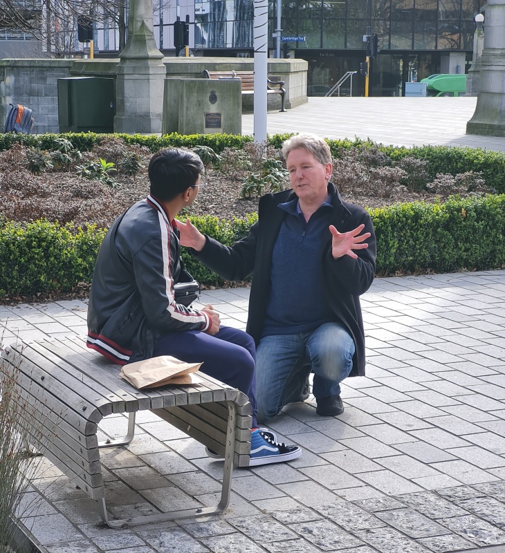 That’s how the outreach went, from one conversation, straight into another, with a little bit of walking down Riccarton Road in between.