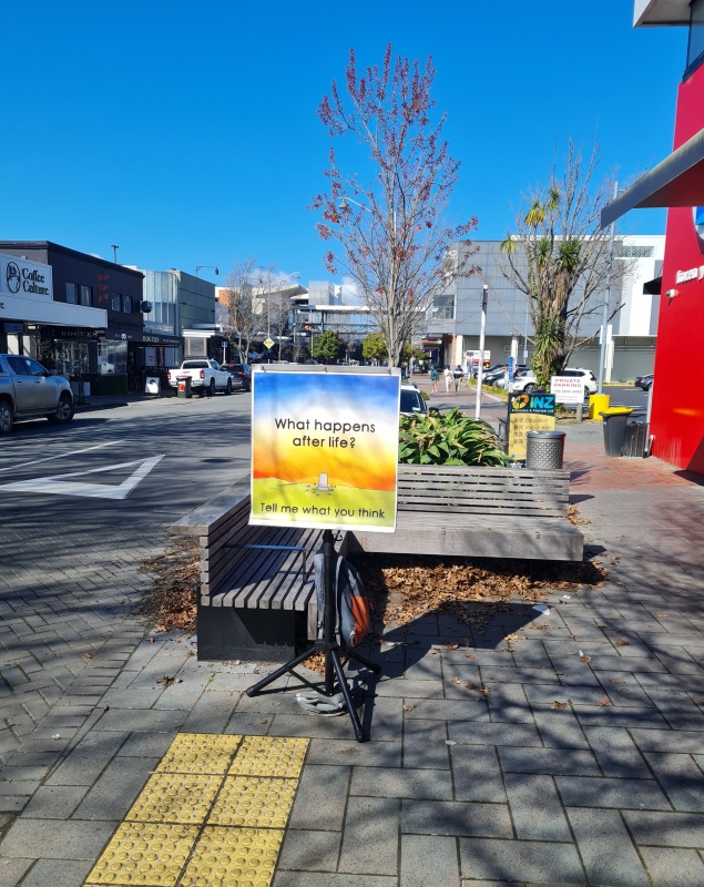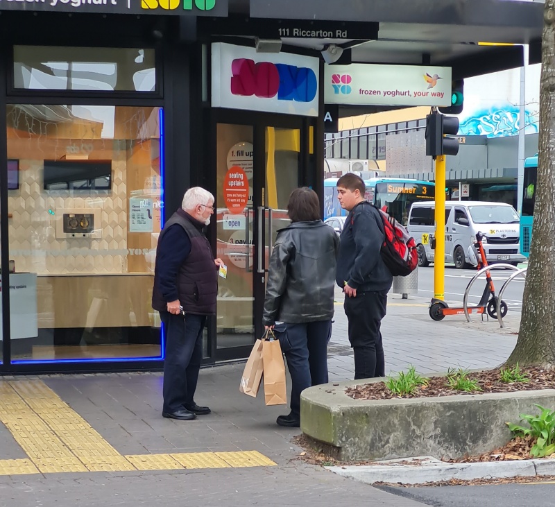 Tuesday afternoon's outreach in Riccarton was really slow for the first half hour - only one short engagement, but then I was busy with epic chats for the rest of the outreach.  2 chats in particular come to mind.  (I had to really think, but I’ve finally remembered!)