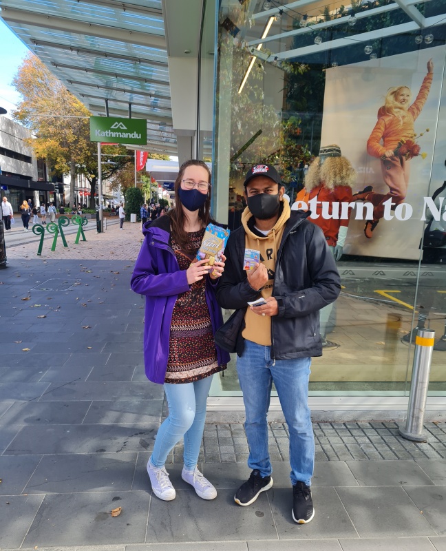 So, I was able to make it to all four regular street outreaches this week. Roger couldn’t make it on Tuesday, so I was on my own at Riccarton. Andy, Roger, John and I were in the city on Friday. I was on my own again on Saturday lunchtime in Riccarton, and there was a good team in the city on Sunday afternoon - a total of 6.