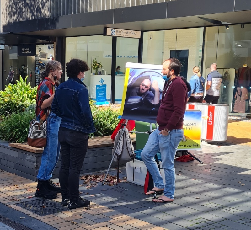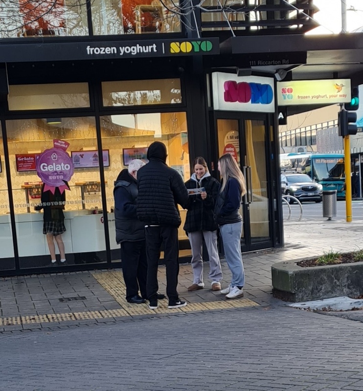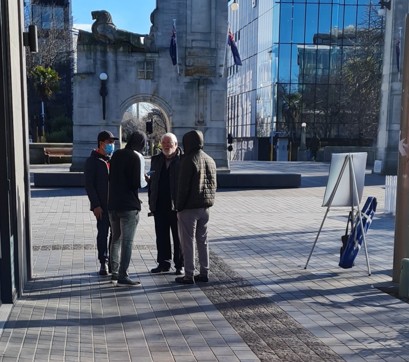 On Tuesday, Roger and I were at Riccarton. This outreach was so long ago now that I can barely remember the details. I’m sure I had some chats! But I remember 2 things: 1) It was cold and got dark early (we have now passed the shortest day), and 2) Roger was having heaps of good chats! (I tried to take some snaps, attached to this report).