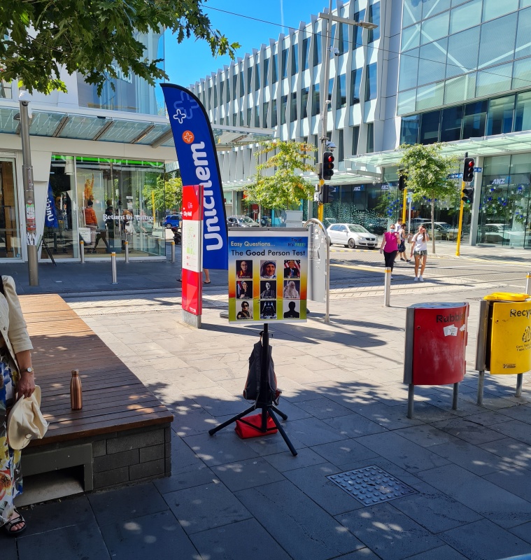 Ended up with a team of six in Cashel Mall on Sunday afternoon. We had a flip chart set up, tracts were distributed and walk up conversations were had. I spent my time during the outreach pairing up with different members of the team.