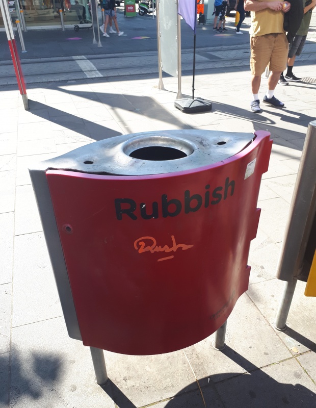 And this is where it gets interesting, these kids all reminded me of the counter protesters we get on the gospel + abortion outreach.  I wondered if I was being set up, and sure enough I was.  And yet, I don’t think they got what they were expecting.  I was able to defuse their attacks, and keep them on track to understanding the gospel.  Many of them became disinterested, but one kept up subtle attacks (which I deflected), and yet another seemed to be genuinely interested.  Suddenly one of the guys pulled out a fat tip pen and pretended to graffiti my flip chart!  It was time for this chat to wrap up.  I’m glad he didn’t actually do it, and I said if he did I’d call the Police.  The chat continued, but then another of the guys actually graffitied the rubbish bin next to me!  (Pictured)  That’s not okay, and I pulled down my flip chart at this stage, telling the kids I wasn’t willing to talk if they were gonna hate.  I told them it’s ironic that I get accused of being hateful because I’m a Christian (not true - I made it clear multiple times I don’t hate anyone) - and yet those who accuse me of such, demonstrate their hate so clearly.  The hypocrisy is clear - I just pray they see the inconsistency, and reflect on the words and hope of the gospel they heard (this making it a great chat).  They dispersed quickly.  I didn’t have anything to clean up the graffiti with. :(