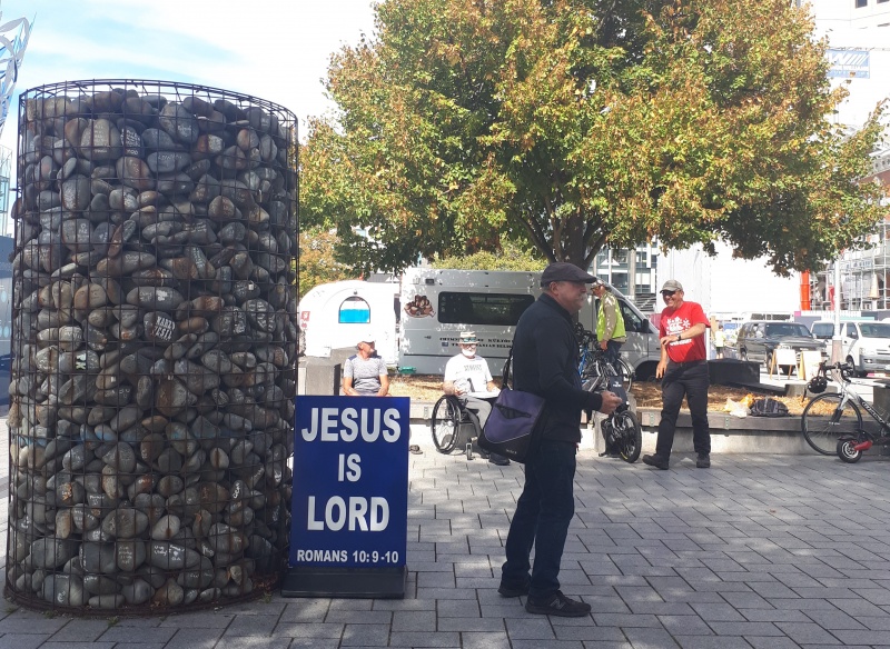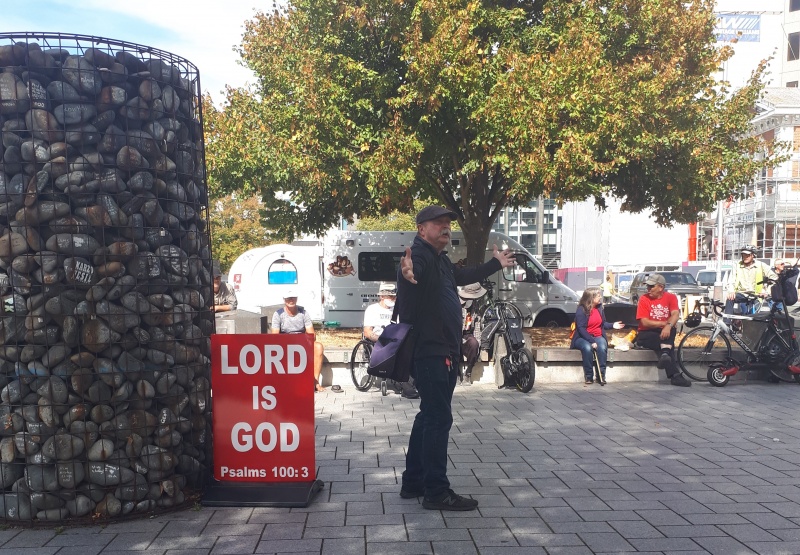 On Friday I was online before heading into Christchurch city.  There were a lot of people in the speaker's corner, Christians, hecklers, and everything in between.  I became engaged in a one to one conversation with a guy who had a real mix of religion.  But it wasn’t really a conversation, it was mainly him talking and me being cut off all the time.  I got sick of it and started ignoring him.  When he finally stopped talking, he started listening to the preacher: Marty, who was wonderfully proclaiming the gospel - which is the power of God for salvation!