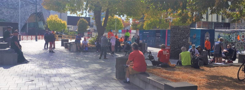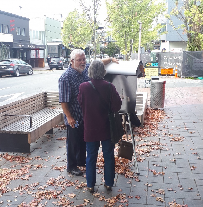 Autumn has arrived at our usual outreach spot in Riccarton.  On Tuesday morning Roger and I were there for a couple of hours with our flip charts.  But I often went for a walk down Riccarton Road and back - covering the bus stops - and getting into conversations that presented themselves.