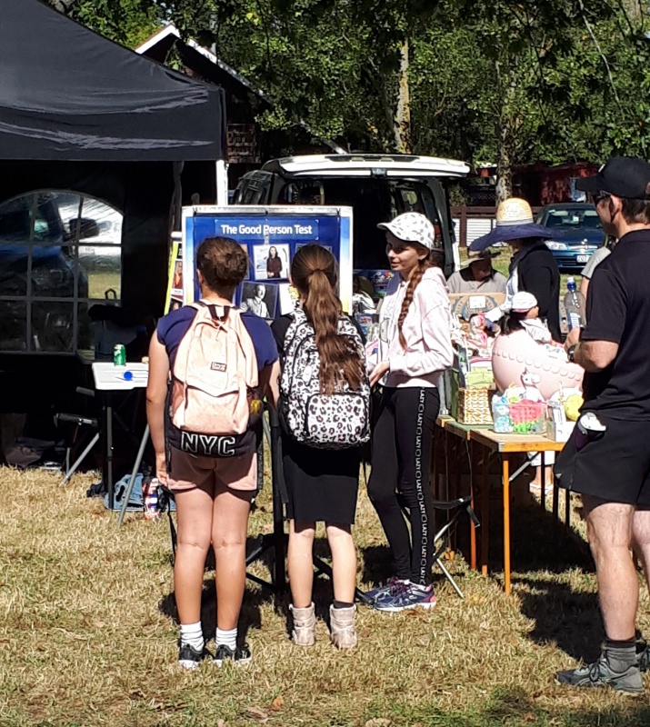 Another one was with a tall solid guy who had two kids with him.  He walked past, and heard me ask, “would you like to try the good person test?”  He swung around and said, “ok!”  I wasn’t expecting that, and it wasn’t a good sign.  Sure enough he wanted to argue.  He kept taking the conversation off on tangents, but soon I think the reason for his argumentation was that he couldn’t stand the thought that someone who repents at the last minute can be forgiven.  Usually that’s a sign that they have been deeply hurt by someone and can’t stand the thought of that person being forgiven.  I persisted in the conversation, I really had to control my desire to fight back and listen to what the guy was saying.  He was raising deep and important questions and not allowing me to respond.  Eventually I asked if I could email him, as I wanted to be able to address his questions properly.  To my surprise he gave me his email address!  I will certainly be getting in touch.  Please pray for this man.