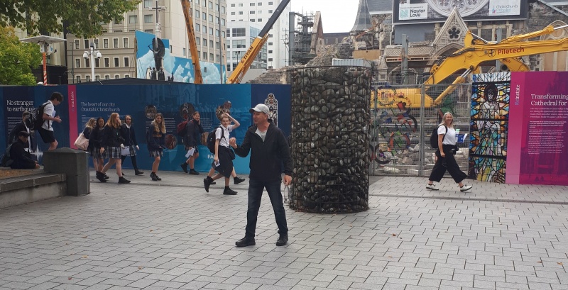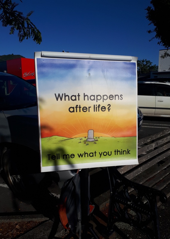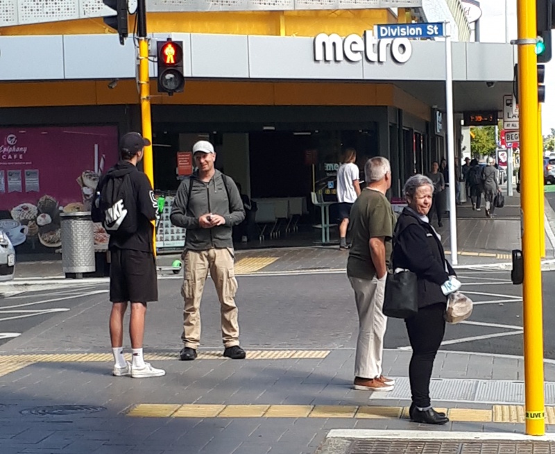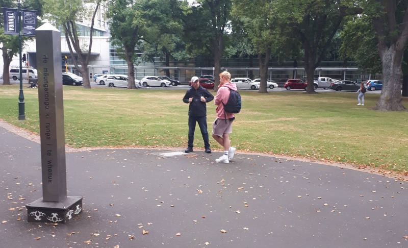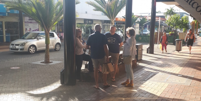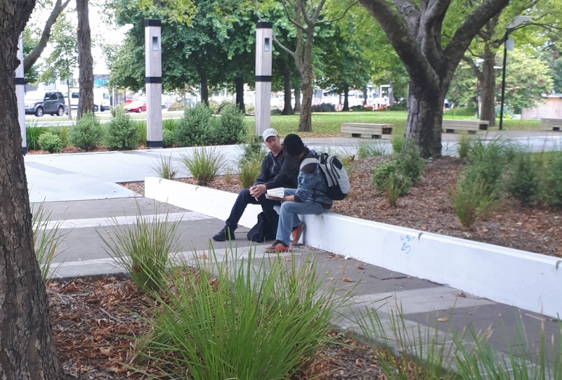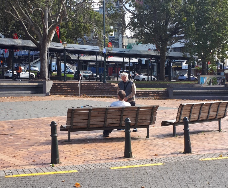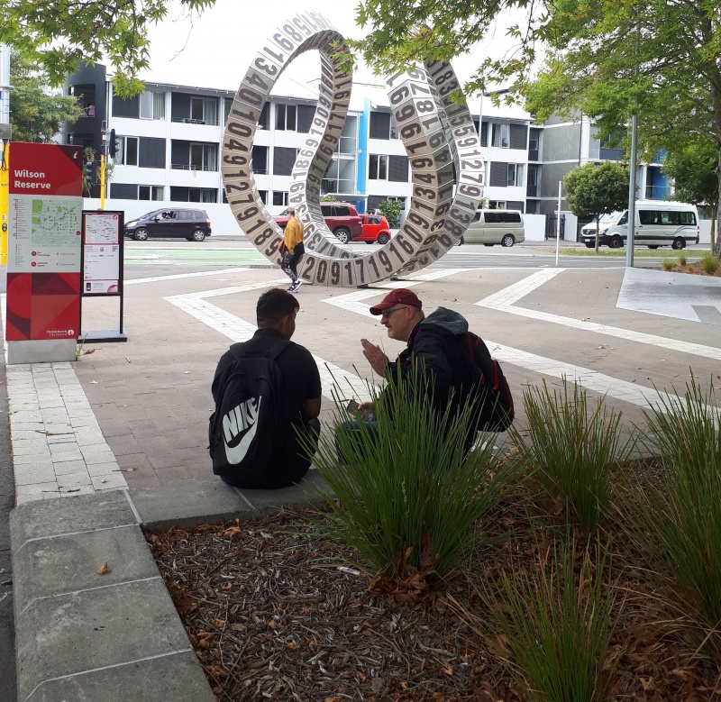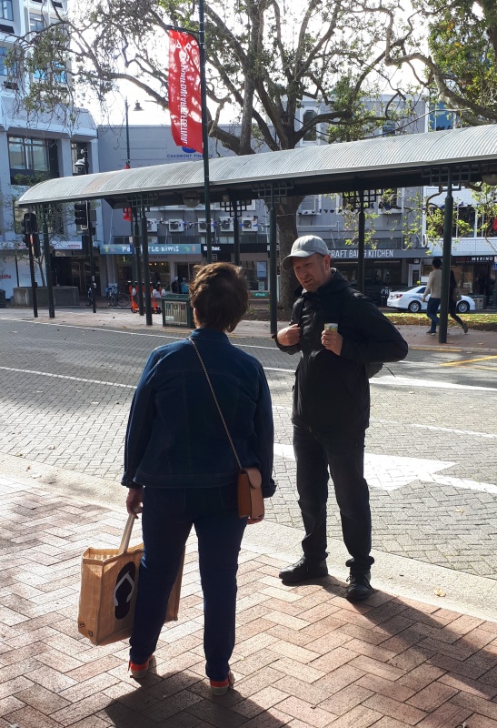 After some time at the Bridge, we followed the same track backwards to the Square.  One conversation that really stood out for me was one Craig and I had with an older guy from Ashburton.  He was happy to talk and it turned out he was a Christian.  We chatted for a bit, and then I said, “please don’t be offended, but because I don’t know you, I want to check - why can God let us into heaven?”  (I wanted to know what he thought it meant to be a Christian.)  Well, he got offended!  “I’m not answering that, I’m a Christian, I’m not interested in debates.”  We chatted some more, and I tried again - but he shut me down.  Bemused, we parted ways soon after that.