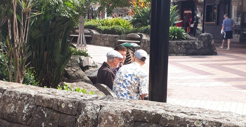 After lunch we went to Tikipunga for a change of scene.  As we parked the car, I noticed two guys sitting on a bench in the shade, and I knew that would be a good conversation.  And it was, it was the best conversation of the whole week so far.  Because these two guys were so laid back, Phil and I were able to slow right down and really work through the law and gospel and make sure they really understood.  The checking questions were really powerful, and they seemed to be blown away by the gospel.  One of the guys said, “You’ve changed my mind”, and “I believe that Jesus died for my sins”.  But they were both very engaged.  They were pointed to the Bible and to Clark Road Chapel before they moved on.