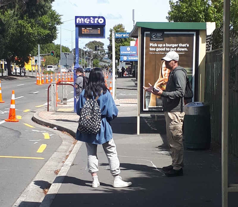 The bus stops weren’t busy - four evangelists was a bit much saturation!  So a couple of us stayed at the bus stops, while the other two went searching down Papanui Road.