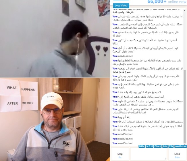 I was online on Saturday for three hours. I had a lot of chats - 12 in total. One of them started with two girls asking me to wave to their TikTok followers - one had a mobile phone and was recording me. So I waved and simply asked them (and their followers) what they thought happened after they died. She kept recording as I took them through the law and the gospel - it was a great chat (pictured)!