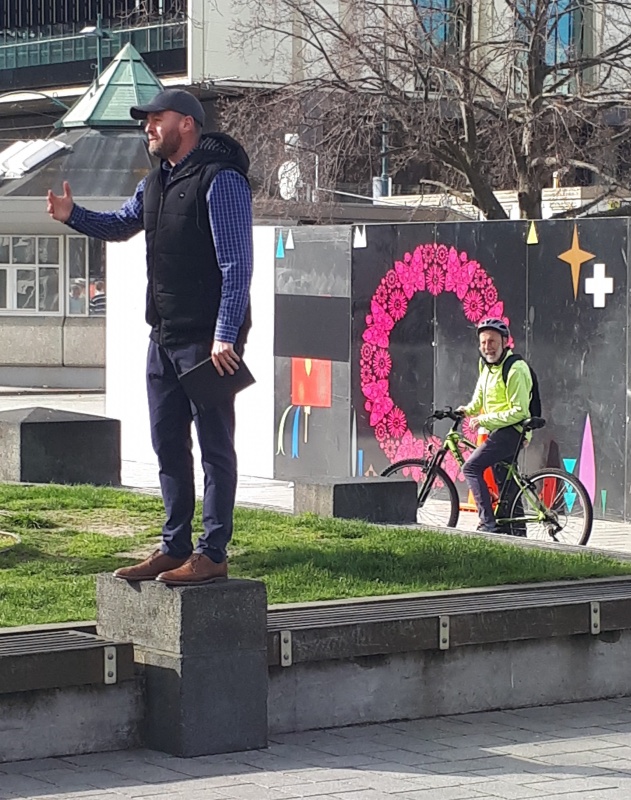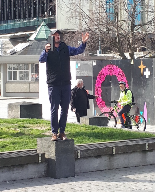 Back to nice weather on Saturday in Christchurch (NZ). After Andy and I interviewed James White for the Tell Me Evangelism Conference I headed into the city for a couple of hours of outreach.