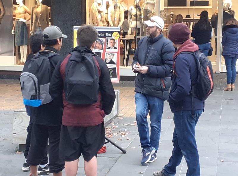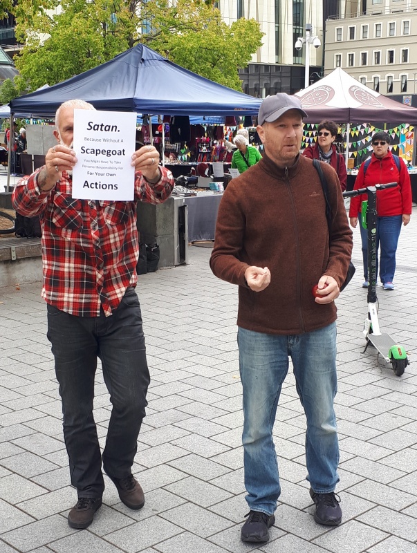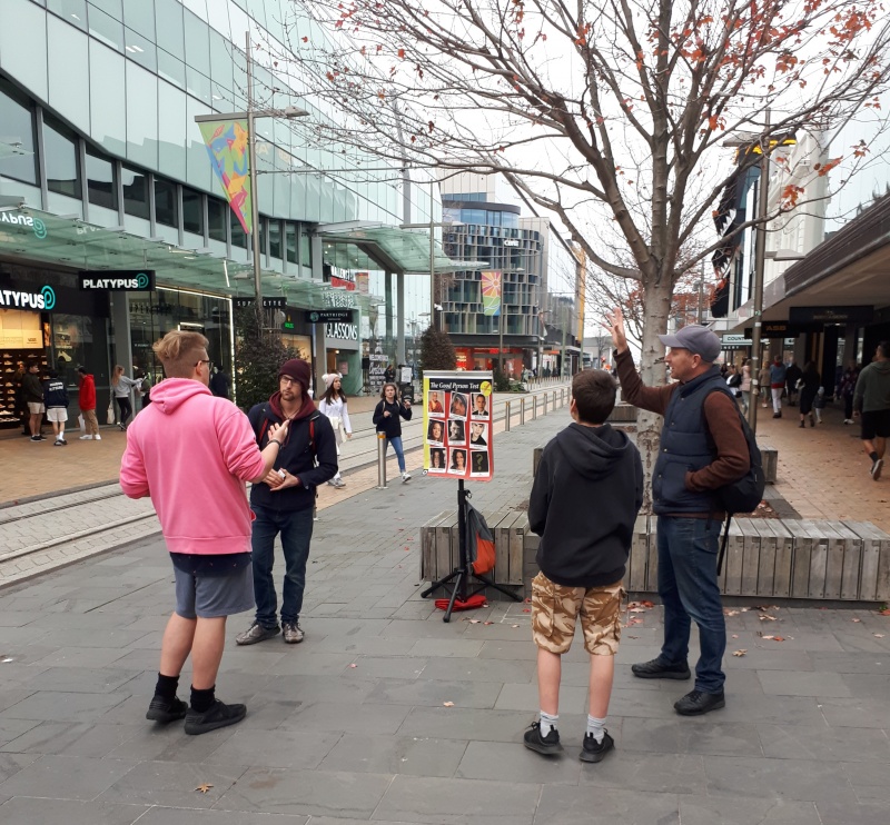 Sunday was another outreach Sunday for Redemption Church, joining the Operation 513 team on Cashel Mall.  I felt a bit overwhelmed, as there were more newbies than experienced evangelists.  But it worked out ok.  I actually had a really busy outreach, with lots of wonderful gospel opportunities.  I ended up being out thirty minutes longer than usual for a Sunday - praise God.  And I had various newbies, and various times listening in and giving it a go!