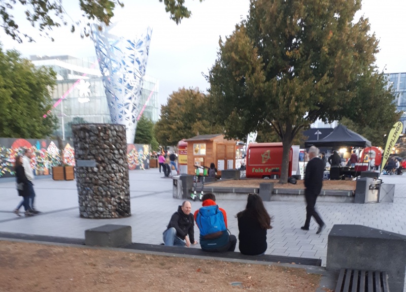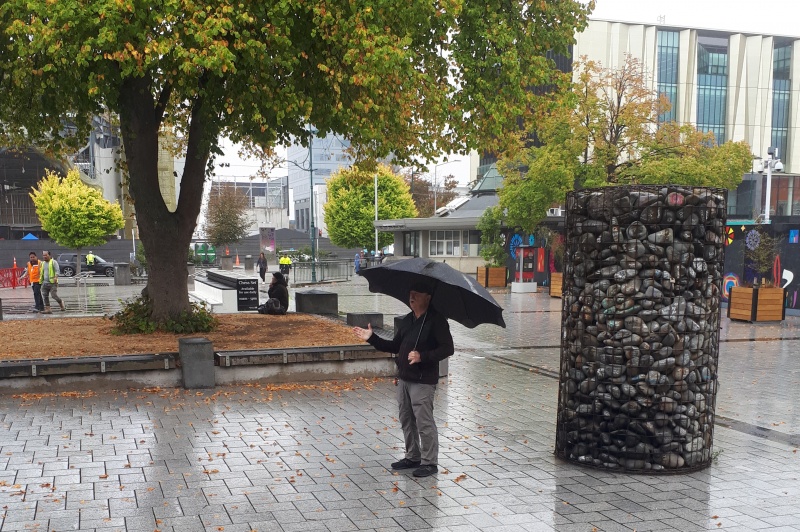 I started the outreach in Cathedral Square with a chat with a construction worker.